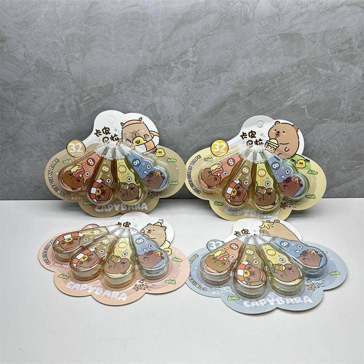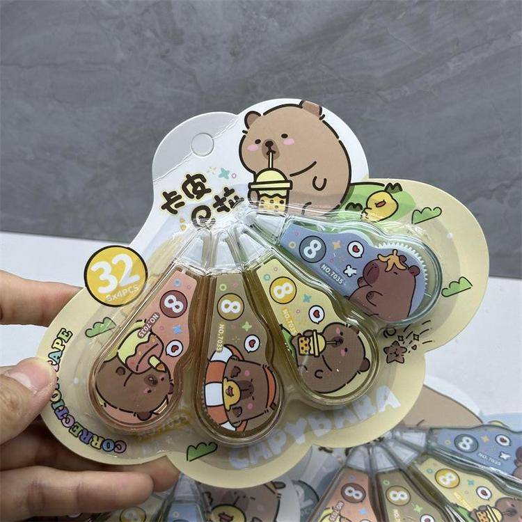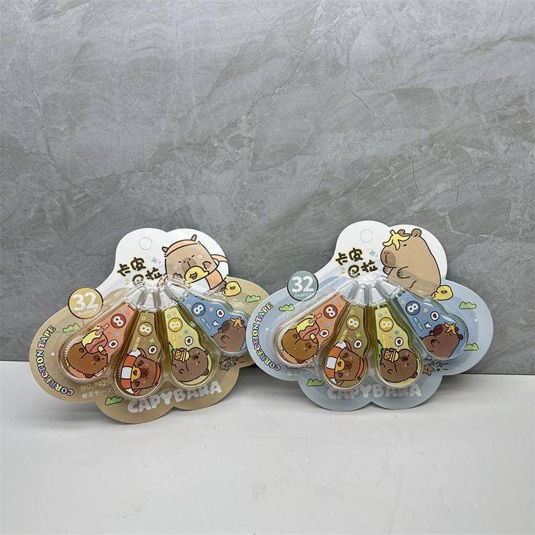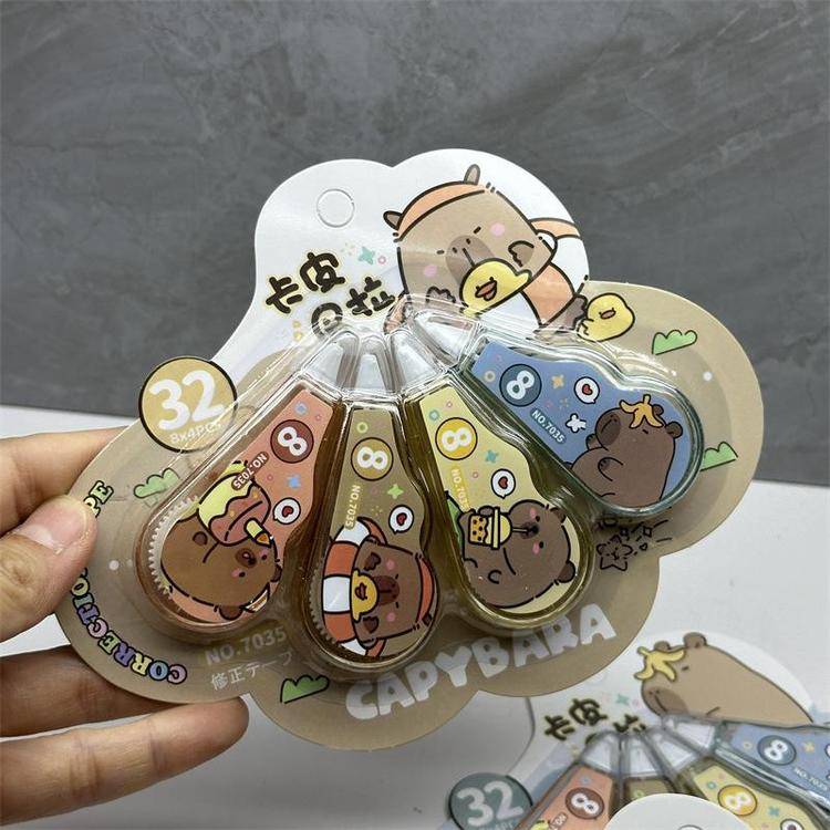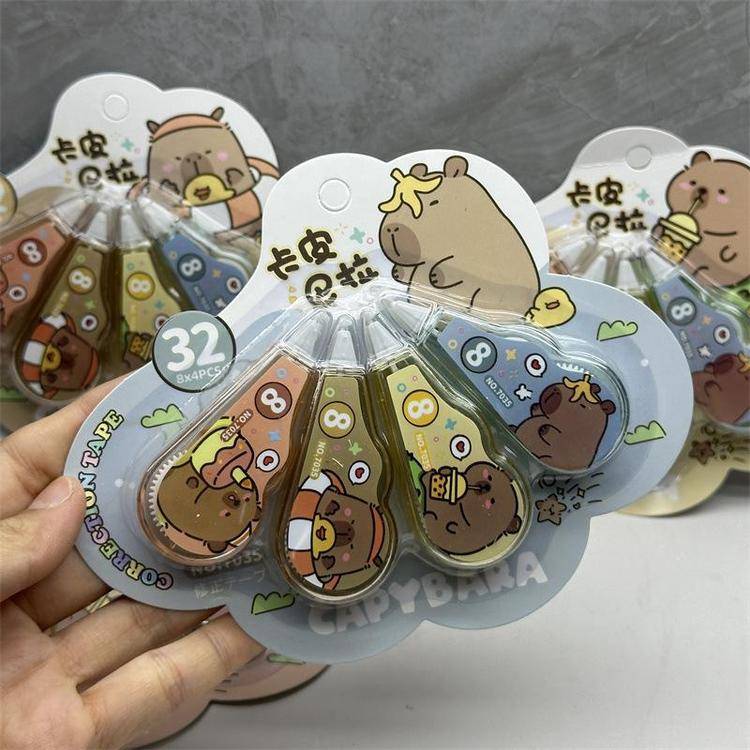 外贸卡皮巴拉迷你修正带豚豚崽4个装涂改带豚鼠改正带水豚改错带